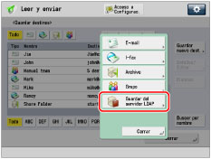 Puede guardar una dirección de e-mail obtenida buscando la listas de directorios de la red con servidores LDAP (Lightweight Directory Access Protocol).
