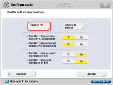 Pulse [Sí] para las funciones (distintas a la función de copia/impresión) que desee limitar con la gestión de ID de departamentos.