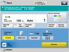 La pantalla especificada en "Pantalla de inicio/restauración prefijada" aparece como la pantalla prefijada visualizada del inicio/restauración. Introduzca el ID y el PIN de departamento a fin de utilizar las funciones.