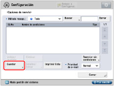 Las opciones de reenvío se guardan en la memoria si pulsa [Aceptar] en la pantalla Guardar o Editar. Las opciones de reenvío idénticas sólo se guardan una vez en memoria. |