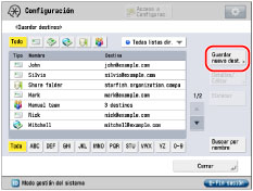 Pulse [Establecer destino] → [Guardar destinos] → [Guardar nuevo dest.].