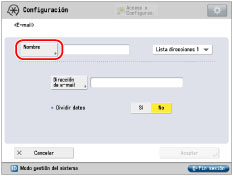 La dirección de e-mail que introduzca se guardará en la lista de direcciones que seleccione aquí.