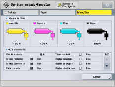 Si establece [Tóner/Otro] como Pantalla prefijada (Monitor estado/Cancelar):