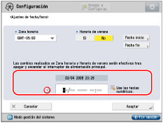 La hora del Observatorio de Greenwich (Inglaterra) se denomina GMT (Greenwich Mean Time). Si configura el horario de verano, el equipo adelanta automáticamente la hora del equipo en la fecha especificada. |