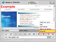 Si activa [Restringir vista de historial] en Opciones, no será posible ver el historial de URL. (Consulte "Opciones de directivas y normas de privacidad".) |