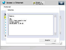 Las URL de páginas mostradas de una memoria de páginas guardada se guardan en el historial de URL. El nombre de la página web, la URL, y la fecha/hora en la que se accedió por última vez a la página web se mostrarán en la información detallada del historial de URL. |