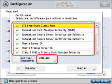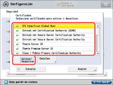 Seleccione un certificado → pulse [Activar/Desactivar].