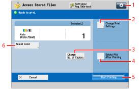 3 | [Change No. of Copies] Press to set the number of prints when multiple files are selected. This key is displayed only when multiple files are selected. |