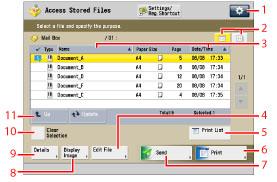 2 | List/Thumbnail Press to select a view setting of folders and files stored in a mail box. |