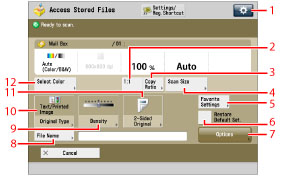 3 | [Favorite Settings] Press to recall scan settings or register frequently used settings in the Favorite Settings. |