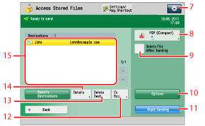 14 | [Details] Checks or changes the destination information selected from the destination list. |