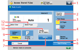 1 | ![]() You can specify the following settings: Register/Edit Favorite Settings Changing the Default Settings |