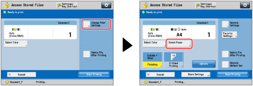 Press [Change Print Settings] → [Select Paper].