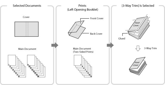 Specify by Finishing Size | 3-Way Trim | 364.0 mm to Twice the Size of the Main Document + 30.5 mm (364.0 mm to 487.7 mm) | Width of the Finishing Size + 13.0 mm to 79.0 mm (257.0 mm to 330.2 mm) |