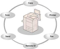 The Send function enables you to send scanned image or document data to file servers, or send it by e-mail or I-fax. A variety of file formats are supported (JPEG, TIFF, PDF, XPS, OOXML), which offer you greater flexibility in accommodating digital workplace environments.