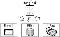 You can set a file format (JPEG, TIFF, PDF, XPS, OOXML) for the scanned original, so that it can be accessed from your computer.