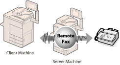 By using the Remote Fax function, you can share the fax function with the remote fax server machine on the same network. Scanned documents, documents stored in the Mail Box/Memory RX Inbox, and data in the computer can be sent using the server machine by facsimile. You can also send documents to multiple addresses.