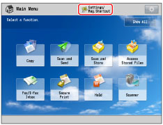 The [Settings/Reg.Shortcut] button can be displayed on the top of the screen or on the Main Menu screen. For more information, see