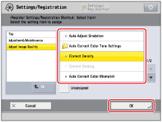 You can register shortcuts for frequently used Settings/Registration settings in [Settings/Reg.Shortcut]. By using the shortcut, you can display the settings screen directly.