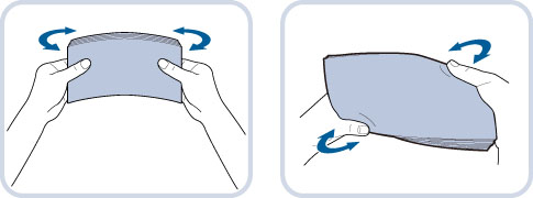 If envelopes are not neatly aligned before being loaded, a problem with the paper supply or a paper jam may occur. Fix any curls or bends before loading the envelopes. |