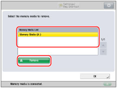 Select the memory media to remove → press [Remove].