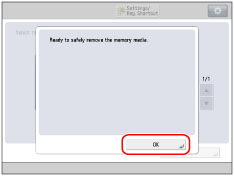 If the message indicating it is OK to remove the memory media does not appear, repeat steps 2 and 3.