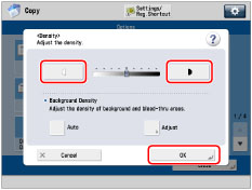 If you change the density in [Options], adjusting the density during copying may not have any effect on the output. |