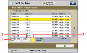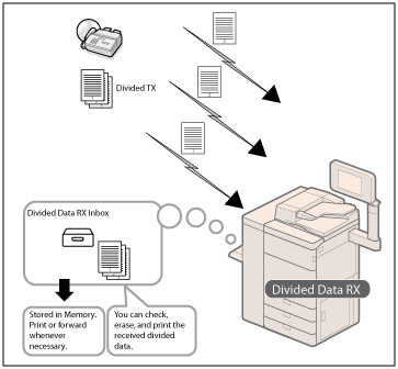 I-fax files received as divided data are saved in the Divided Data RX Inbox, and combined together as one file.