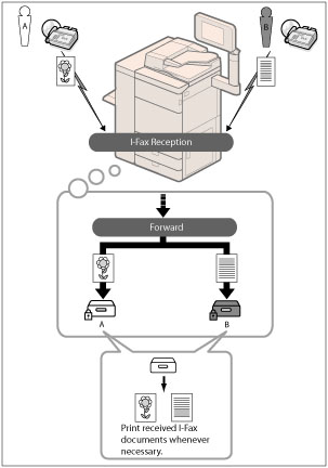 If a file received through I-Fax matches the specified forwarding conditions, it is stored in the Confidential Fax Inbox. You can print the stored file whenever necessary using the desired settings.