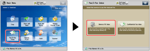 → [Fax/I-Fax Inbox] → [Memory RX Inbox].