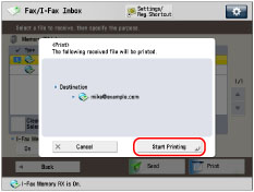 If you set <I-Fax Memory Lock> to 'Off', files received through the I-Fax function are automatically printed and deleted from the Memory RX Inbox.
