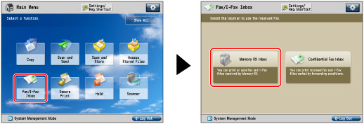 → [Fax/I-Fax Inbox] → [Memory RX Inbox].