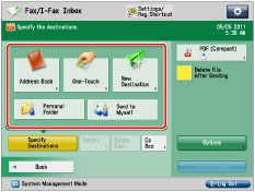 If the destination is stored in the Address Book: | Refer to the following, depending on the type of address book. Scan and Send: Fax: |