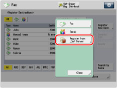 You can store an address obtained by searching the directory listings on the network using LDAP (Lightweight Directory Access Protocol) servers.