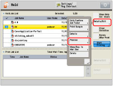 Select the desired job from the Hold Job List → press [Details/Edit] → [Preview].