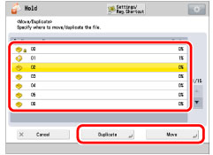 Select the mail box into which you want to move or duplicate the job → press [Move] or [Duplicate].