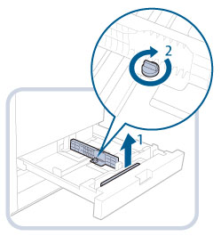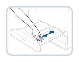 Slide the front guide until it clicks into place. If the front guide is not adjusted properly for the paper size loaded in the paper drawer, the correct paper size may not appear on the touch panel display. Adjust the front guide correctly to avoid causing a paper jam, dirty prints, or make the inside of the machine dirty. |