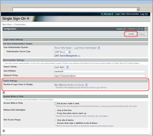 Select the number of user names you want to display from [Number of Login Users to Display] → click [Update].