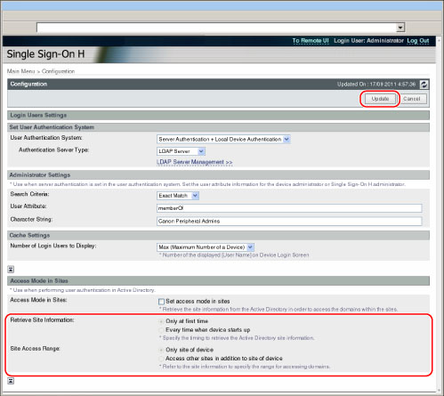 Select each item for <Retrive Site Information:> and <Site Access Range:> → click [Update].