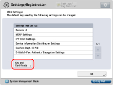 Press [TLS Settings] for [TCP/IP Settings] → [Key and Certificate].