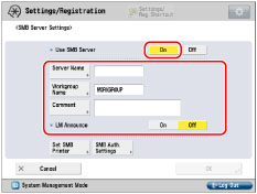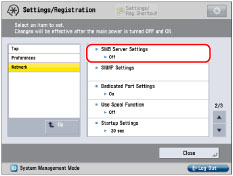 Press [Off] for <Use SMB Server> if you do not want to use the SMB server.