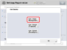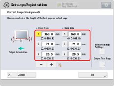 Return to the <Correct Image Misalignment> screen → enter the measured length of [i] and [j] for front and back sides.