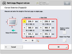 Return to the <Correct Distortion (Trapezoid)> screen → enter the measured length of [b] and [h] for front and back sides.