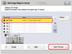 Select a paper source that contains a custom paper size → press [Start Printing].