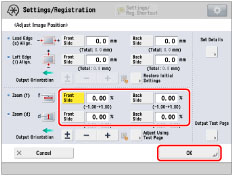 Set the enlargement/reduction ratio (%) for <Zoom (f)> and <Zoom (d)> on <Adjust Image Position> screen → press [OK].