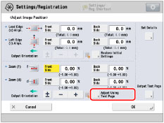 Depending on the paper type, the heat generated by the fixing unit may cause the paper to expand or shrink slightly. In this case, images may also be enlarged or reduced accordingly. This function enables you to set the zoom ratio of the image for each paper, or enlarge the reduced image to match the zoom ratio of the image on the second side of the paper. You can adjust the zoom ratio of the image either by entering the enlargement/reduction ratio, or by entering the value of the test page you measured manually.