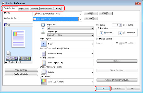 For details about the Canon PageComposer settings, see the Canon PageComposer Help. The display may vary according to the operating system, as well as the type and version of the printer driver. |