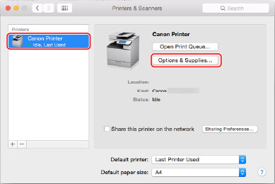 If you are using Mac OS X 10.7 or earlier, check that the driver corresponding to the printer you are using is selected for [Use]. For the driver name corresponding to your printer, refer to the Readme file.