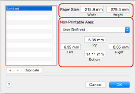 You can set a paper size from 100.0 x 148.0 to 330.2 x 762.0 (mm) in [Page Size].