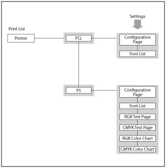 As an example, the sequence of steps for printing a Configuration Page is shown on the following pages.